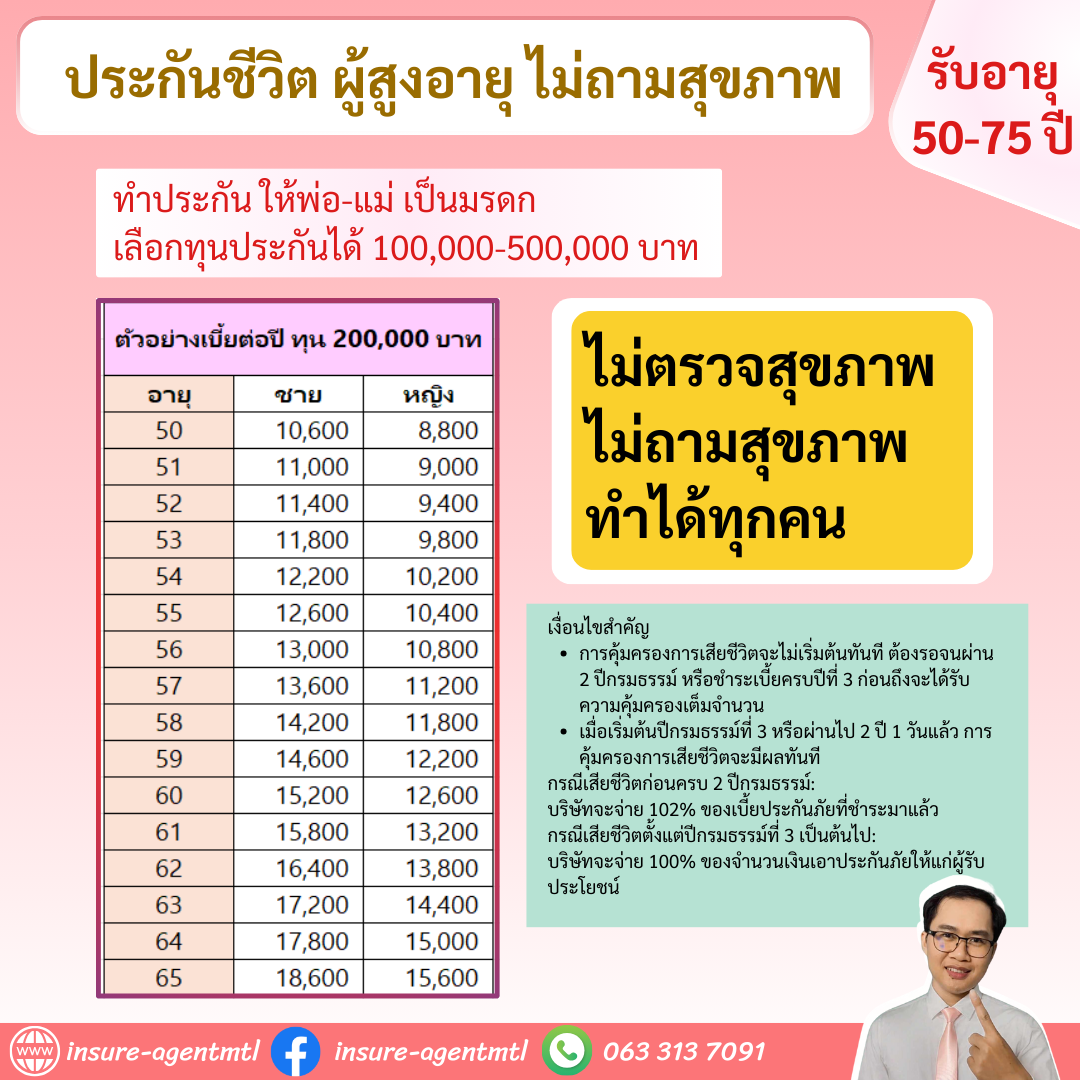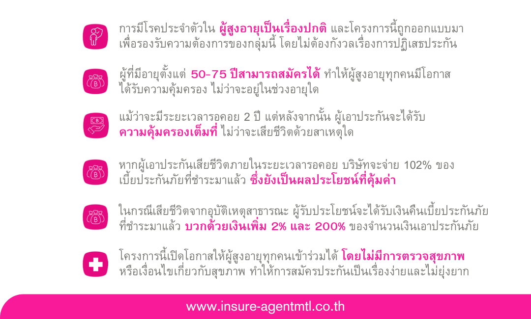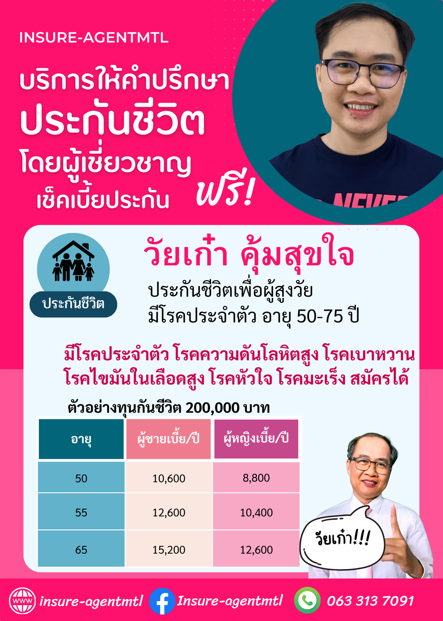 ข้อมูลนี้เป็นเพียงข้อมูลเบื้องต้น โปรดศึกษาข้อมูลเพิ่มเติมจากเอกสารประกันภัย จากเรา Insure-Agentmtl