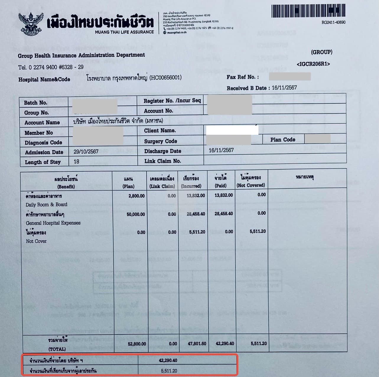 - ประกันกลุ่ม จ่าย 42,290.40 บาท