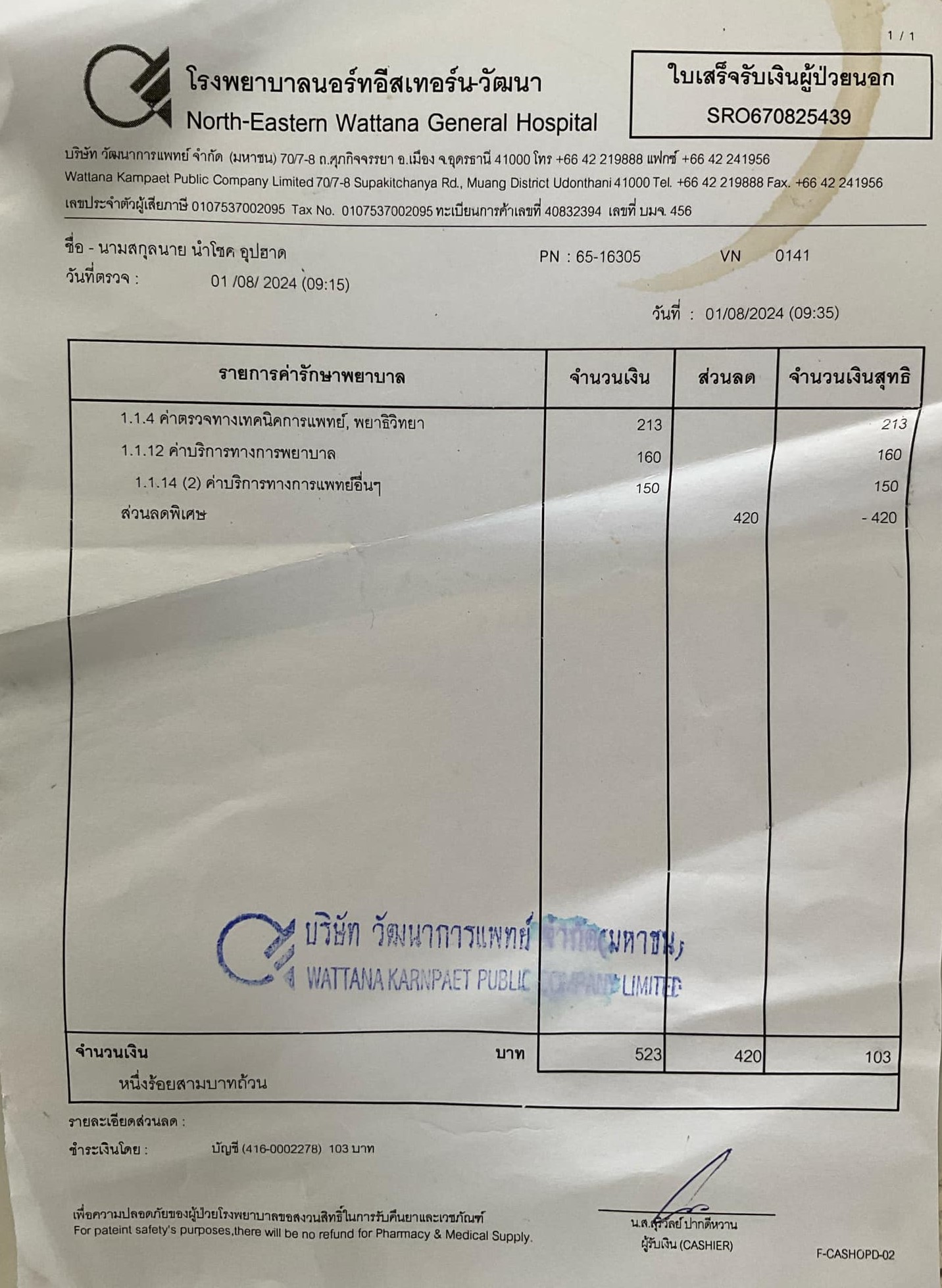 สิ่งที่สำคัญอย่างยิ่งในครั้งนี้คือความคุ้มครองจากประกัน OPD ซึ่งทำให้ผมไม่ต้องกังวลเรื่องค่าใช้จ่ายในการรักษาผู้ป่วยนอก ค่าใช้จ่ายรวม 2,903 บาท โดยที่ประกัน OPD ครอบคลุมถึง 2,800 บาท ทำให้ผมจ่ายส่วนต่างเพียง 103 บาท กระบวนการทั้งหมดตั้งแต่การรักษาจนถึงรับยาใช้เวลาเพียงประมาณหนึ่งชั่วโมง ซึ่งสะดวกและรวดเร็วมาก