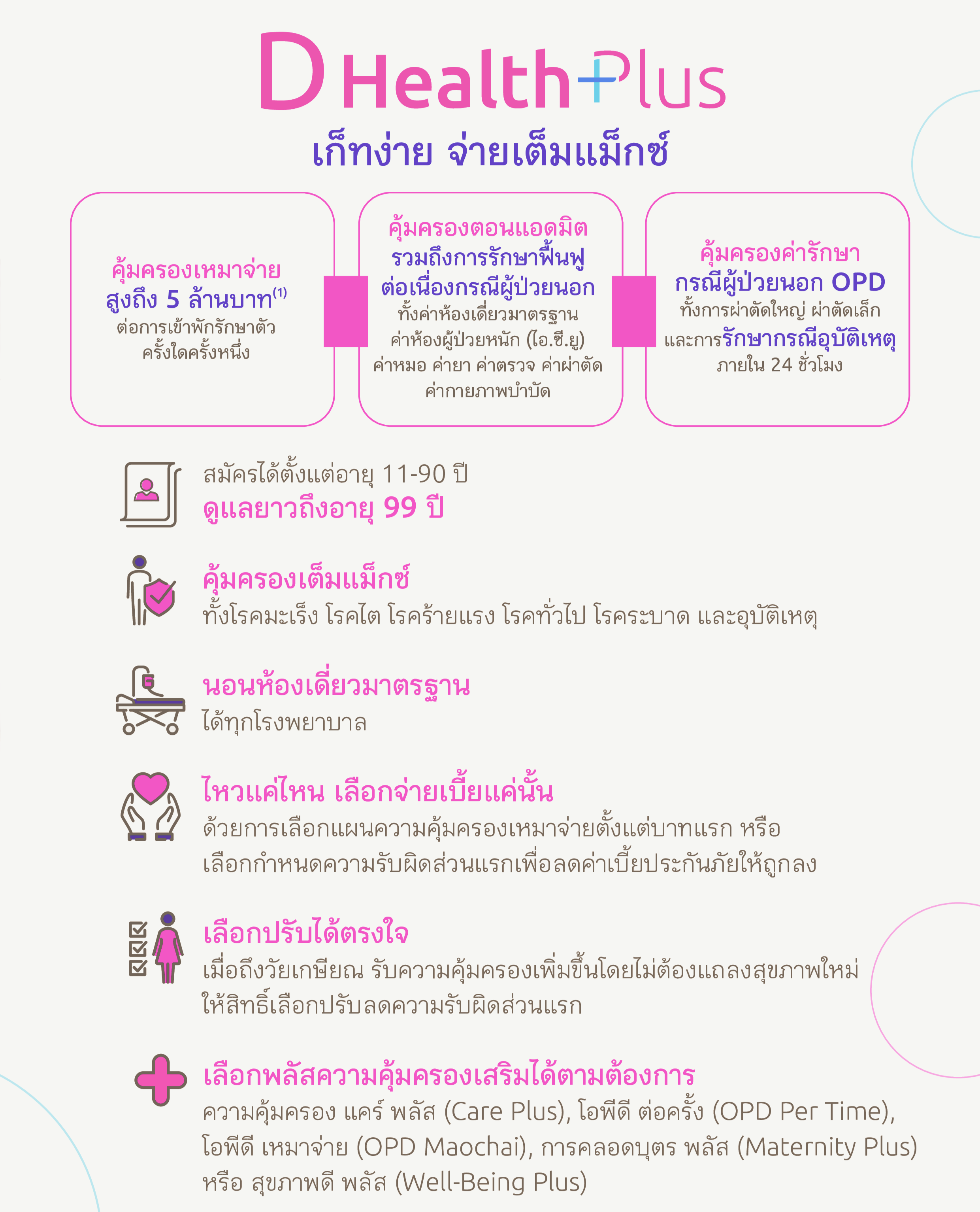 Q: ความคุ้มครองสุขภาพ ดี เฮลท์ พลัส (D Health Plus) ดีอย่างไร ทำไมต้องซื้อ?
